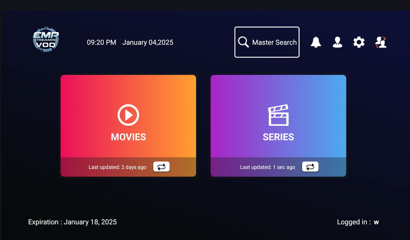 - To start, open the EMP Streaming VOD app. Click the ‘Master Search‘ at the top middle.